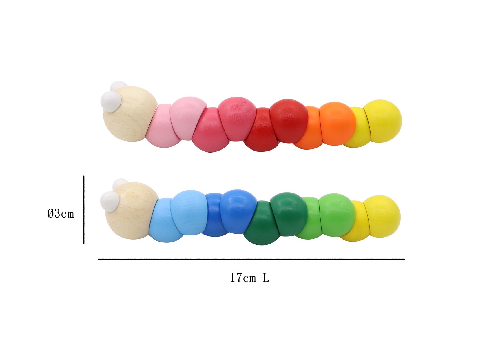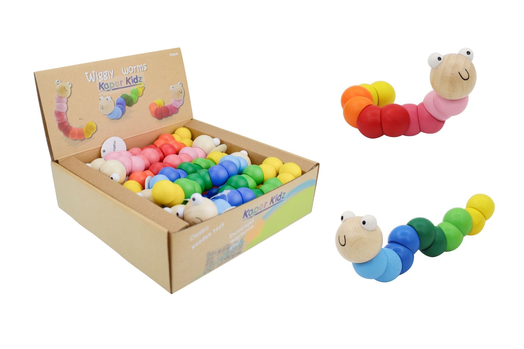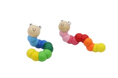 These tactile twisty worms are great clutch and teething toys. Easy to grasp and play with, these gripping toys can be twisted and bent in different directions making these worms the perfect twisty, fidgeting grip toy. This worm can also be used as a teether and is easy to grip and hold. These wooden Jointed Worms help children and young babies to develop hand grip, hand eye coordination and focus. Painted in bright colours, they help young babies to develop their eye sight by being easy to recognise and colourful to focus on. Each wooden Jointed Worm from Kaper Kidz is made from natural beech timber and finished to the highest quality and painted in child safe, non toxic paint. The Jointed Worms come in two assorted colours, pink and blue, packed in a display of 14pcs (7 of each colour). At the moment, only 18pcs of the pink colour are available.