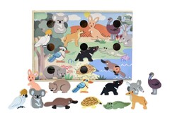 Invite little ones to explore the wonders of Australian wildlife with the Bush Buddies Aussie Animal Hotel by Koala Dream. Designed in Australia, this beautifully crafted wooden play set features 12 iconic native animals tucked inside a charming peek through hotel box. Children can spot each animal through interactive holes, encouraging curiosity, recognition and imaginative storytelling.