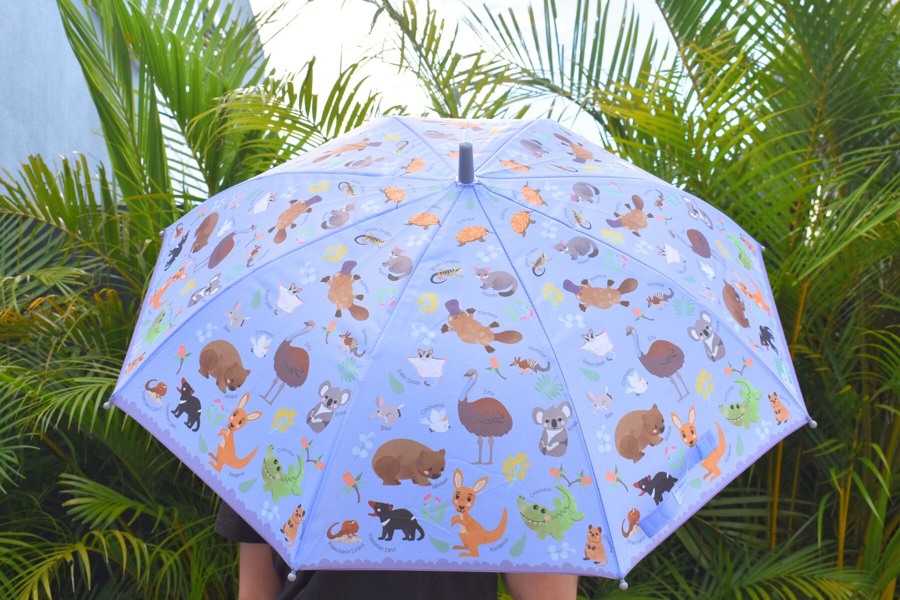 A handy name space on the strap allows you to write your childs name, making it ideal for school, childcare or outings. Finished in a soft purple tone and designed in Australia, the Bush Buddies Aussie Animal Umbrella Purple from Koala Dream is both practical and playful, turning wet weather into an opportunity for learning and fun.
