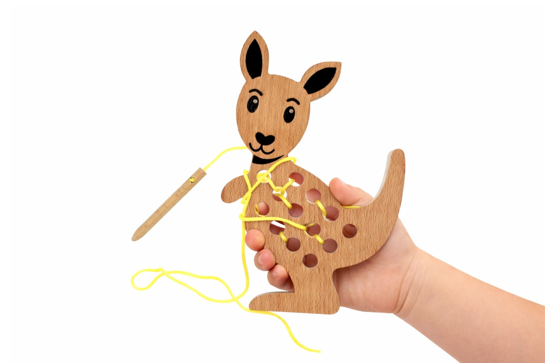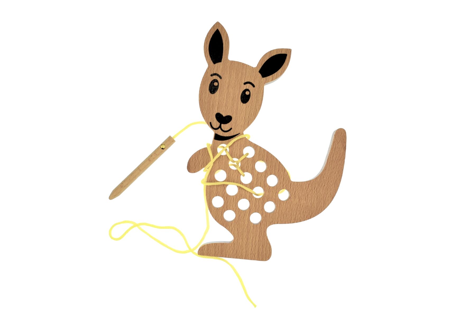 The Bush Buddies Lacing Kangaroo from Koala Dream is a delightful hands on activity designed to develop fine motor skills, focus and coordination. This charming wooden kangaroo features multiple holes for children to thread the lace through, encouraging creativity and patience as they explore different ways to weave the string.