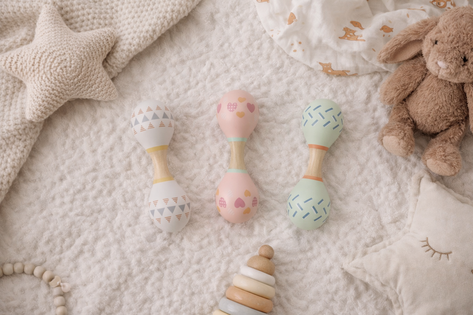 CALM & BREEZY MARACA RATTLE DOUBLE SET OF 3PCS
