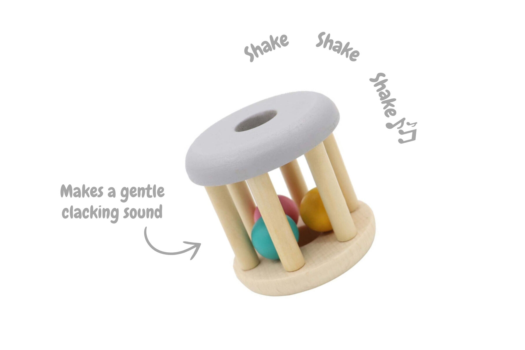 The Grey Calm & Breezy Wooden Rattle from Kaper Kidz is a beautifully crafted first toy designed for curious little hands. Made from smooth, sustainable timber and painted in a soft grey tone with child-safe, non-toxic paint, it combines safety, style, and play in one. With its rounded edges, easy-to-grip bars, and colourful wooden beads inside, this rattle creates a gentle clattering sound when rolled or shaken. Perfect for sensory development, it helps babies build grasping skills, hand-eye coordination, and an early love for sound and movement. A classic and calming choice in a versatile grey shade, making it a perfect gift or addition to any toy collection.