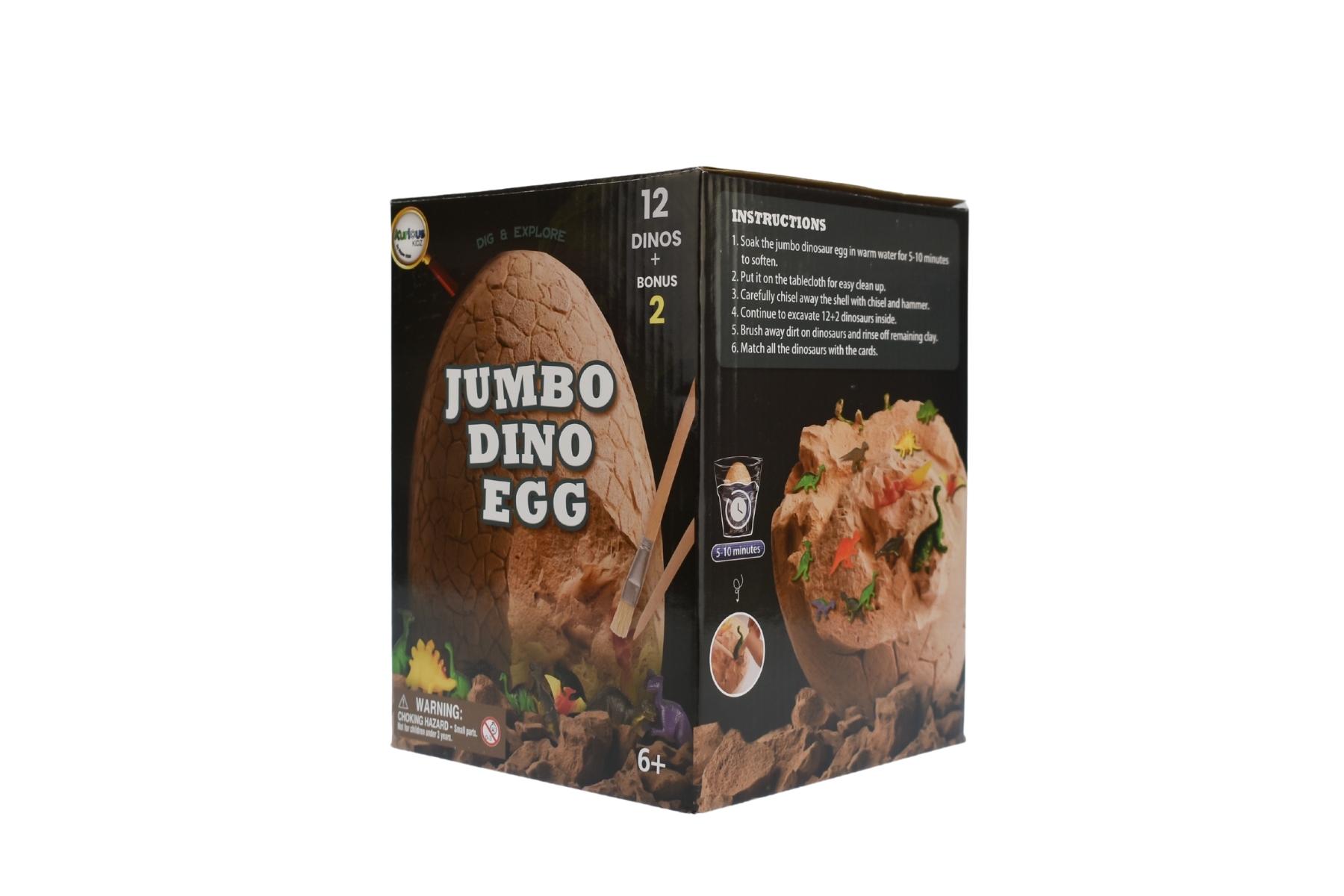 1 Dino Egg Block, 12 Learning Cards, 12 DINOS Egg block size approx 11cm (W) x 11cm (L) x 15cm(H) 1 hammer size 18.5cmLx 2.5cmWx 5cmH. 1Chisel 13.5cmL x 0.7cmWx 0.7cmH. 1 Dust Brush size 14cmLx 0.7cmW x0.7cmH.