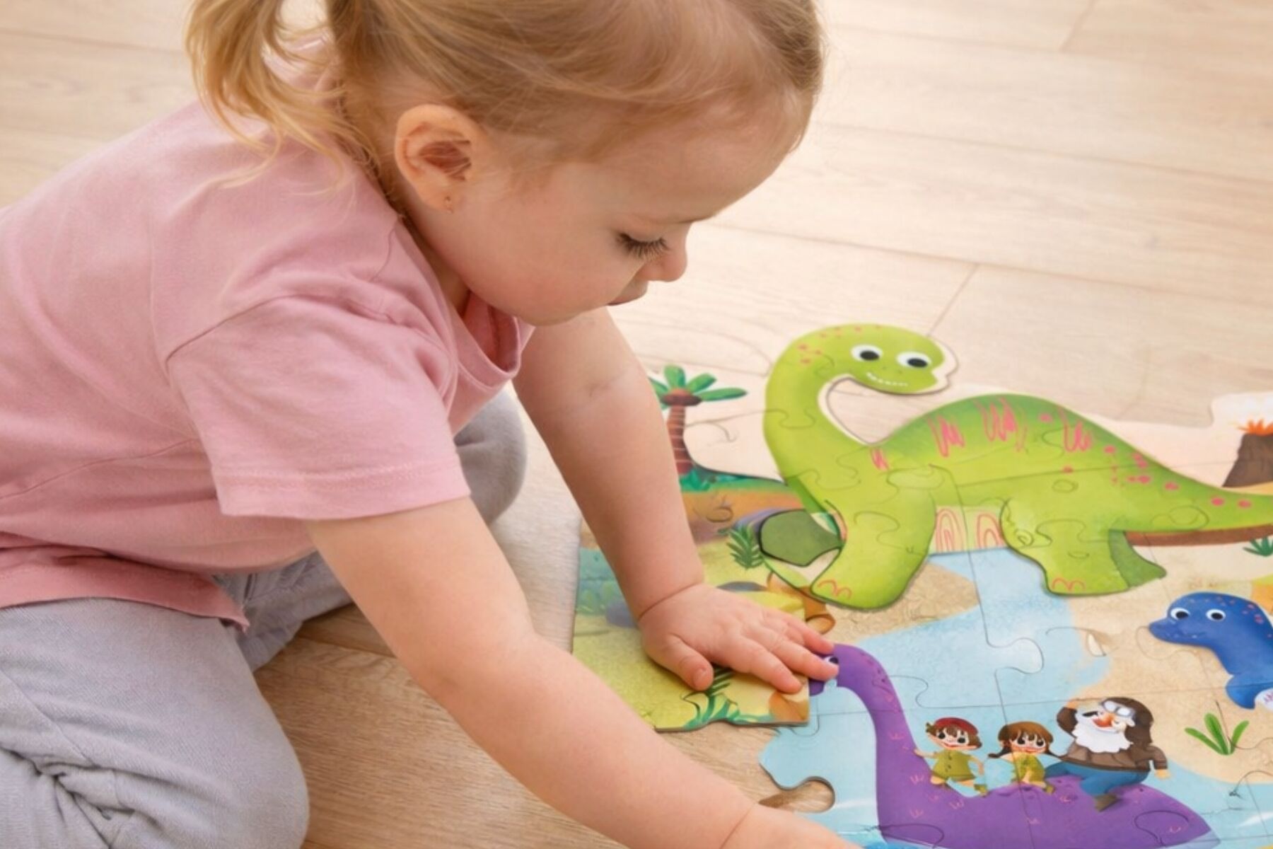 Piece together a colourful prehistoric adventure with the Lovely Dinosaur Puzzle! This engaging 40-piece jigsaw features friendly dinosaurs, lush landscapes and playful characters that make puzzle time fun and exciting for little explorers. With large, sturdy pieces (approx. 8.5 x 8.5 cm) designed for small hands, children can easily grasp, place and connect each piece while developing important skills such as problem solving, hand-eye coordination and concentration. Once completed, the puzzle reveals a vibrant dinosaur scene full of details for kids to discover and talk about. Packed in a convenient storage box, it’s perfect for playtime at home or on the go.