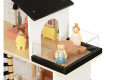 The set includes wooden family figures plus furniture and pet accessories to help children start playing straight away. A staircase connects the floors and the balcony area adds extra space for imaginative scenes. Made from sturdy wood with smooth child friendly edges this dollhouse is a beautiful screen free centrepiece for playrooms and a lasting gift for toddlers and preschoolers.
