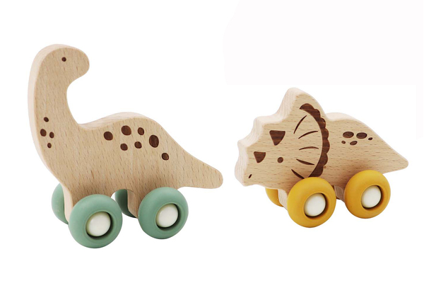 Each dinosaur in this set is meticulously designed to ignite young imaginations and enhance motor skills through tactile exploration. The smooth wooden surfaces and colorful wheels offer a delightful sensory experience, perfect for fostering a love for dinosaurs in budding paleontologists.