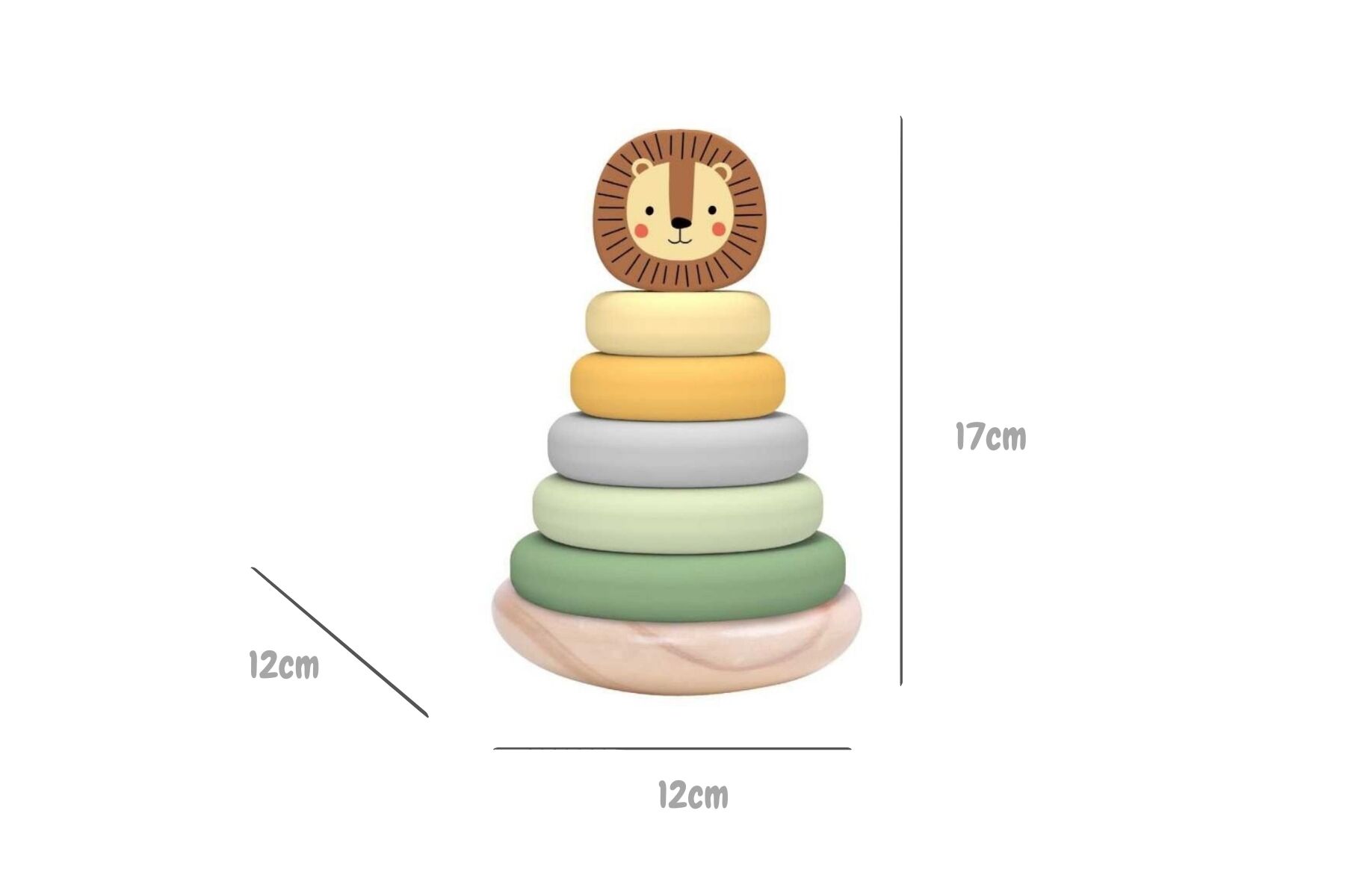 This wooden Lion Stacking Tower from Tooky Toy is designed to provide hours of entertainment and learning for children aged 12 months and above. The Lion Tower features five colourful wooden stacking rings that fit onto a curved wooden base. The unique curved design allows the tower to wobble and sway, adding an extra level of fun to the stacking experience. The tower is topped with a cute wooden lion face, adding to its charm and appeal. The Lion Stacking Tower helps children develop their hand-eye coordination as they try to stack the rings in the correct order. It also promotes problem-solving skills as children figure out which ring goes where and teaches children about size and colour recognition as they match the rings to the correct base. Lastly, the wobbling feature of the tower enhances gross motor skills as children balance and grasp the toy. Overall, this wooden stacking tower is an excellent educational and fun toy for young children. The wooden Lion Tower from Tooky Toys is made from timber and finished to the highest quality and is painted in child safe, non toxic paint.