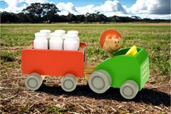 Introducing the ultimate fun and versatile wooden game - the Milk Bottle Tractor and Bowling Game from Koala Dream! This beautifully crafted wooden tractor not only serves as a milk bottle transporter but also doubles up as an exciting bowling game that is sure to delight both children and adults alike. The game comes with a set of wooden milk bottles that can be loaded onto the back of the tractor and transported to their destination. But the fun doesn't stop there! The same milk bottles can be used as bowling pins for a game of bowling, while the head of the tractor driver doubles up as the ball. Children can enjoy hours of imaginative play as they transport their milk bottles and set up their own bowling alley. The game helps develop hand-eye coordination, gross motor skills, and social interaction as children play with friends and family. Each wooden Milk bottle Tractor & Bowling Set from Koala Dream is made from timber and finished to the highest quality and painted in child safe, non toxic paint.