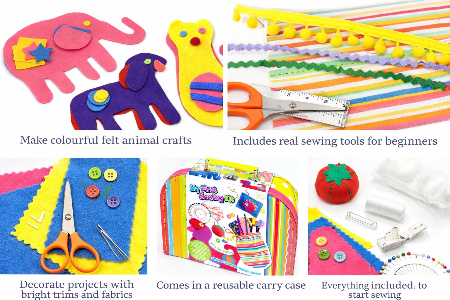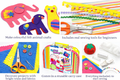 Discover the educational wonders of sewing with KAPER KIDZ My First Sewing Kids Craft Kit. Tailored for ages 5 and above, this creative DIY set not only offers hours of fun and safe play but also enhances fine motor skills and sparks creativity. Complete with pre cut felt, scissors, pins, threads, and more, it provides an enriching experience that fosters learning through hands on exploration. After the crafting adventure, neatly pack everything away in the tin carry case for easy storage and endless future adventures.