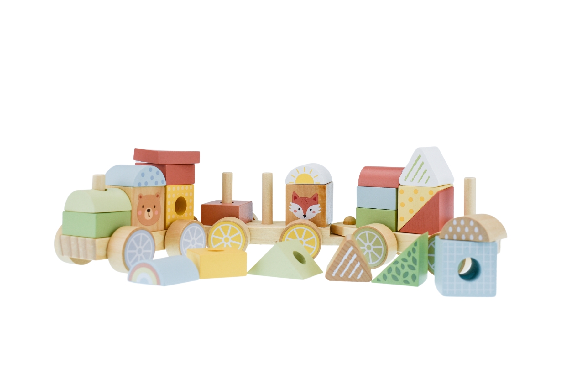 Crafted from high-quality, FSC certified timber and painted with child-safe, non-toxic paints, this bright and cheerful train set prioritizes safety and durability. Parents can rest assured that their little ones are enjoying hours of safe and enjoyable play. Whether learning to stack, sort, or simply exploring their creativity, the My Forest Friends Stacking Blocks Train is sure to become a cherished favorite in any playroom or nursery.