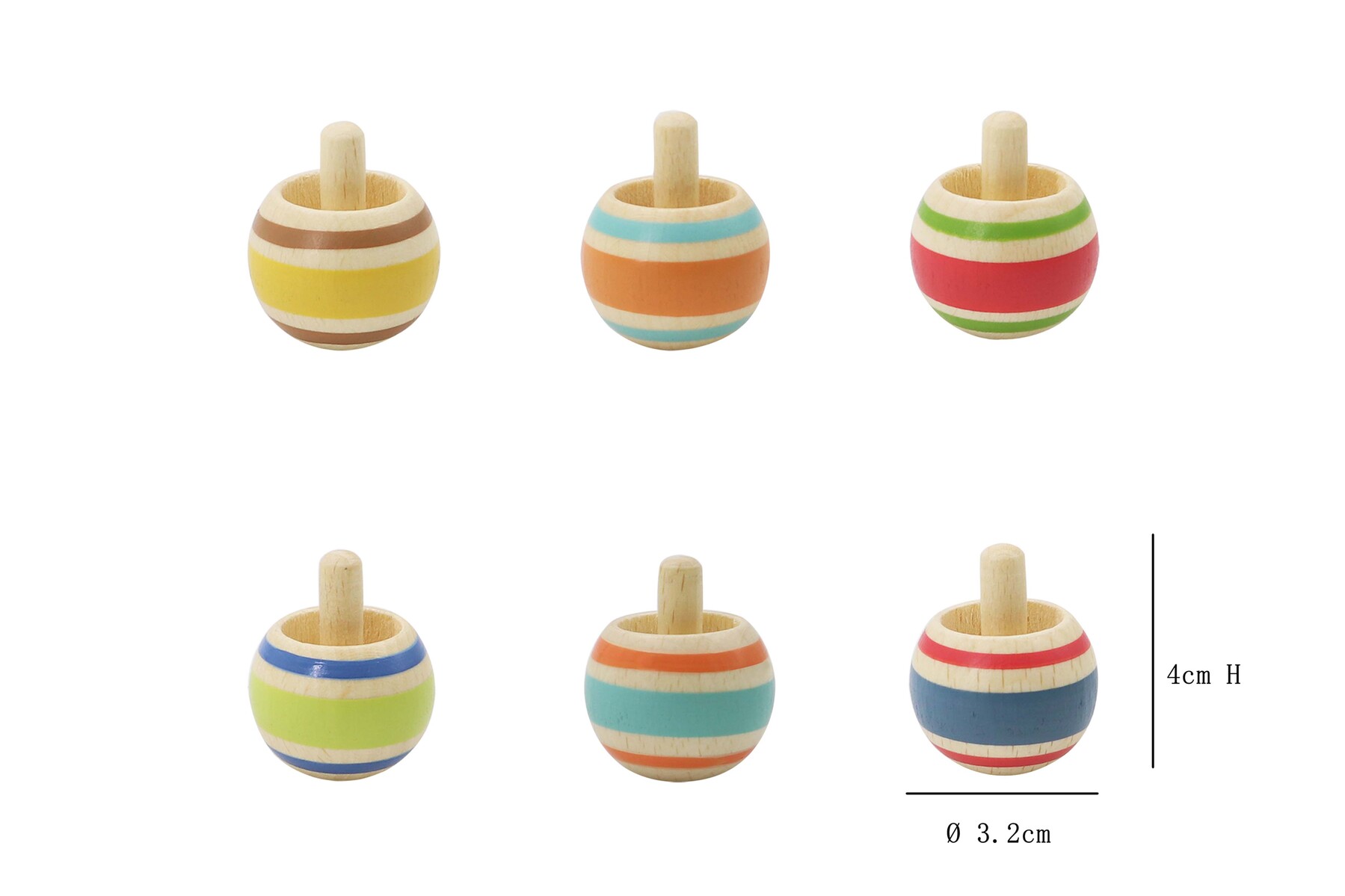 Spinning Top size approx. 3cmLx3cmWx4cmH. Weight 10g each