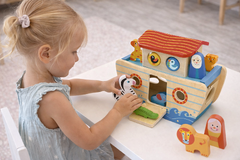 Bring the beloved story of Noahs Ark to life with the Tooky Toy Noahs Ark playset. This delightful set invites children to stack and arrange charming wooden animals inside the ark, enhancing fine motor skills through interactive cut out shapes on the boat's side.