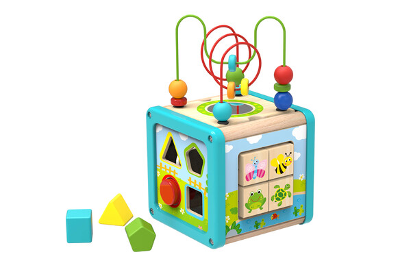This fabulous activity centre will provide hours of fun and stimulating play for toddlers as they explore a variety of activities. Ideal multi-functional toy for toddlers as it has 5 different sides of activity learning. Just to name a couple, abacus for counting, labyrinth for fine motor skills. Made with good quality wood. Non-toxic paint used.