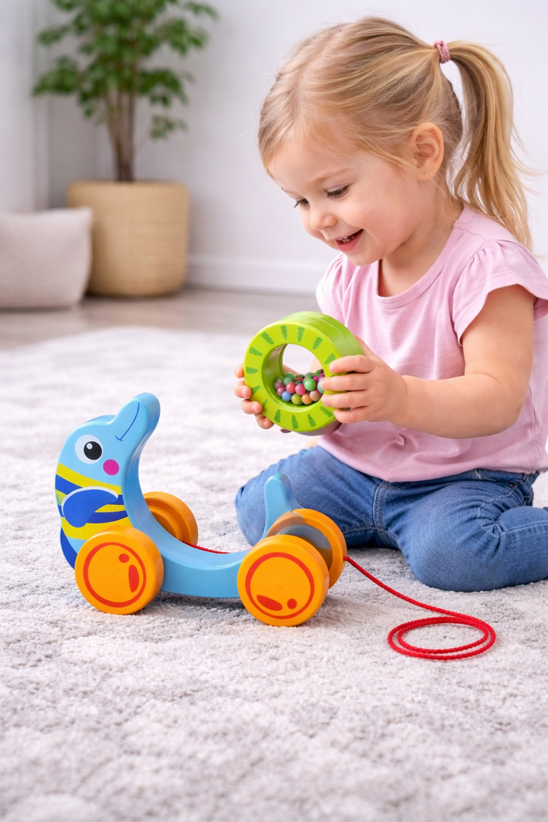 PULL ALONG ROLLING DOLPHIN WITH BEADS