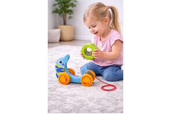 Pull A Long dolphin is a cute addition to your child's daily strolls. The bright and vibrantly coloured wood finishes are sure to catch the attention of your little ones. Besides, there's nothing quite like seeing your little one tug their wooden dolphin toy with the turning ball rolling as they walk.