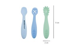 Available in a set of 3 vibrant colours of light blue, blue and green, these spoons captivate your child's attention, making mealtime an exciting adventure. Plus, they're made from food-grade silicone, ensuring they're gentle on sensitive gums and entirely safe for your precious one.