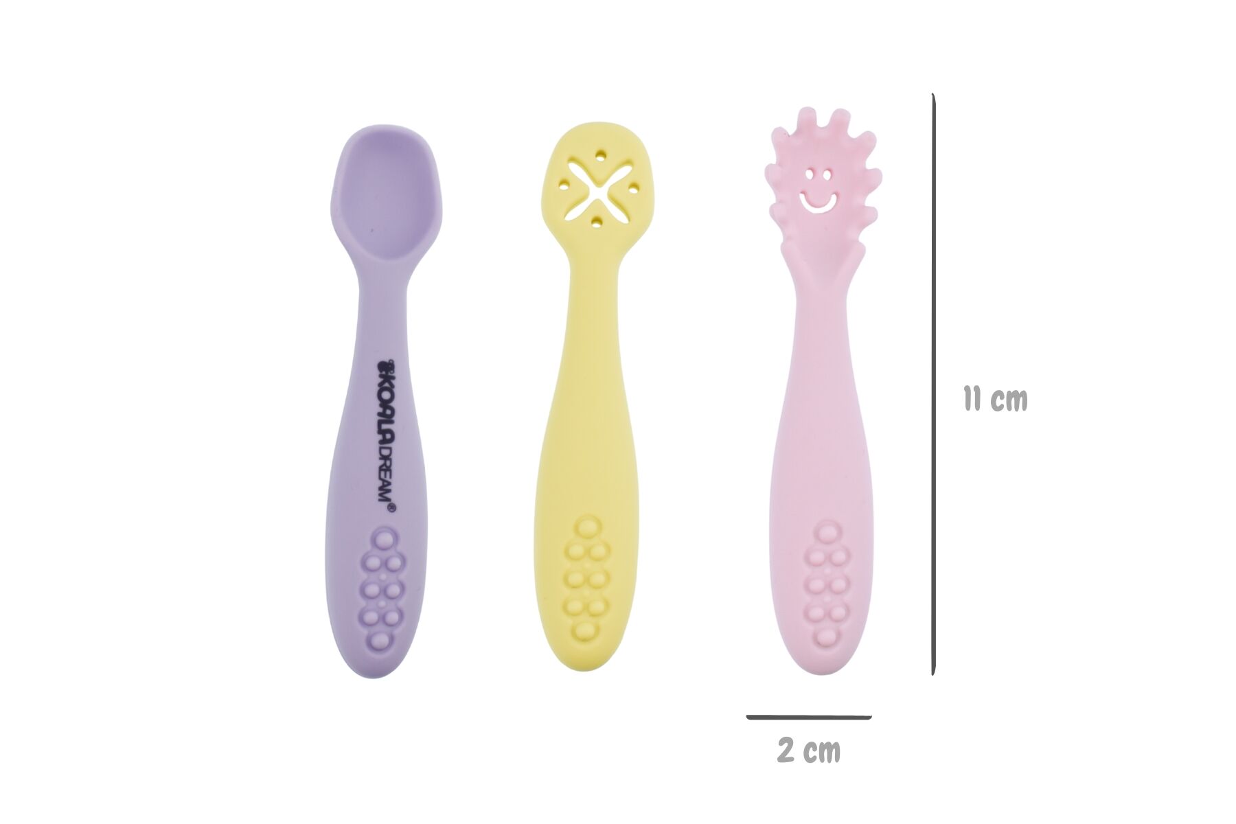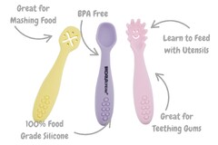 Available in a set of 3 vibrant colours of pink, lilac and yellow, these spoons captivate your child's attention, making mealtime an exciting adventure. Plus, they're made from food-grade silicone, ensuring they're gentle on sensitive gums and entirely safe for your precious one.