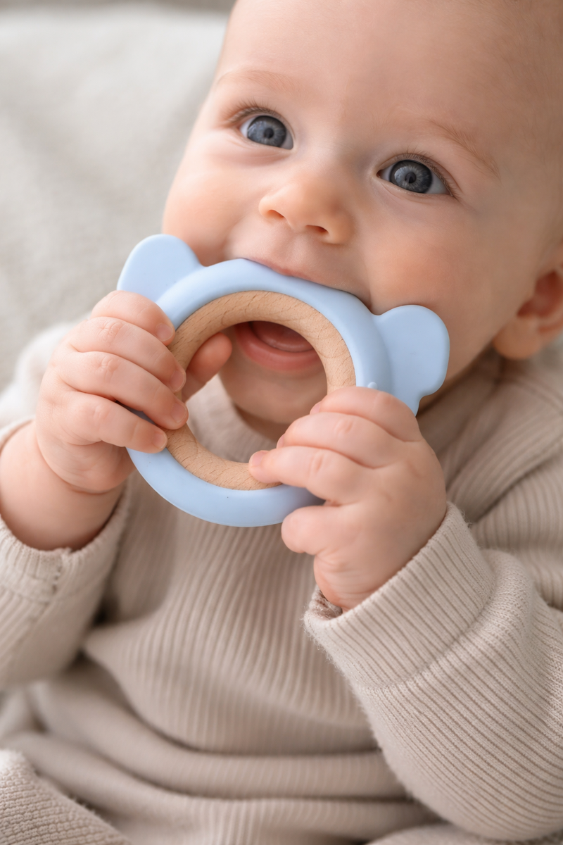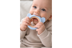 The Silicone and Timber Koala Teether from Koala Dream is the ultimate solution for soothing sore gums. This teether combines the natural charm of a wooden ring with the comforting texture of silicone, providing the perfect gripping and chewing toy for little ones and comes in a calming blue colour. Designed with practicality in mind, the easy-to-hold wooden ring allows babies to grasp and manipulate the teether with ease. The smooth timber surface offers a satisfying tactile experience, promoting fine motor skills development. The silicone component of the teether provides soothing relief for teething discomfort. Its gentle texture is specifically designed to massage and soothe sore gums, providing a safe and comforting chewing experience for babies. Crafted with high-quality materials, the Silicone and Timber Koala Teether prioritizes safety and durability. The wooden ring is made from natural, non-toxic timber, while the silicone is food-grade and free from harmful substances such as BPA. The Silicone and Timber Koala Teether from Koala Dream is both functional and easy to clean. The silicone component can be easily wiped clean, and the wooden ring can be gently hand washed as needed.