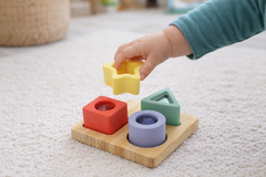 The Koala Dream Silicone Prism Play Sorter is a sensory-rich toy designed for children aged 6 months and above. Featuring a bamboo base with four colourful silicone prisms, including two mirrors and clear plastic, this toy encourages shape sorting, colour recognition, and visual exploration through its unique effects. Children can match the prisms to the tray while engaging with the reflections and colours, promoting cognitive and fine motor skill development. Made from soft, food grade silicone, it’s safe to hold and easy to clean, simply wipe with a damp cloth. The Koala Dream Silicone Prism Play Sorter is an essential addition to early childhood learning and playtime.