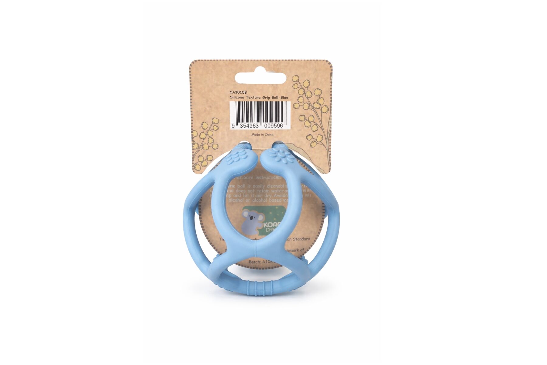 Introducing the Silicone Textured Teether Ball in Blue from Koala Dream, the perfect solution for soothing sore gums. This nifty teether ball is made from child-safe, non-toxic food-grade silicone and features textured sections that provide satisfying chewing and tactile experiences. Designed with little hands in mind, the teether ball is easy to pick up and handle, promoting fine motor skills development. The textured sections offer gentle stimulation and relief for teething discomfort. Keeping the teether ball clean is effortless as it is dishwasher safe, ensuring convenience for busy parents. Simply place it in the dishwasher for quick and hygienic cleaning. The Silicone Textured Teether Ball from Koala Dream combines safety, functionality, and ease of use. With its textured sections, easy grip, food-grade silicone composition, and dishwasher-safe feature, this teether ball is a reliable companion for your little ones teething journey.
