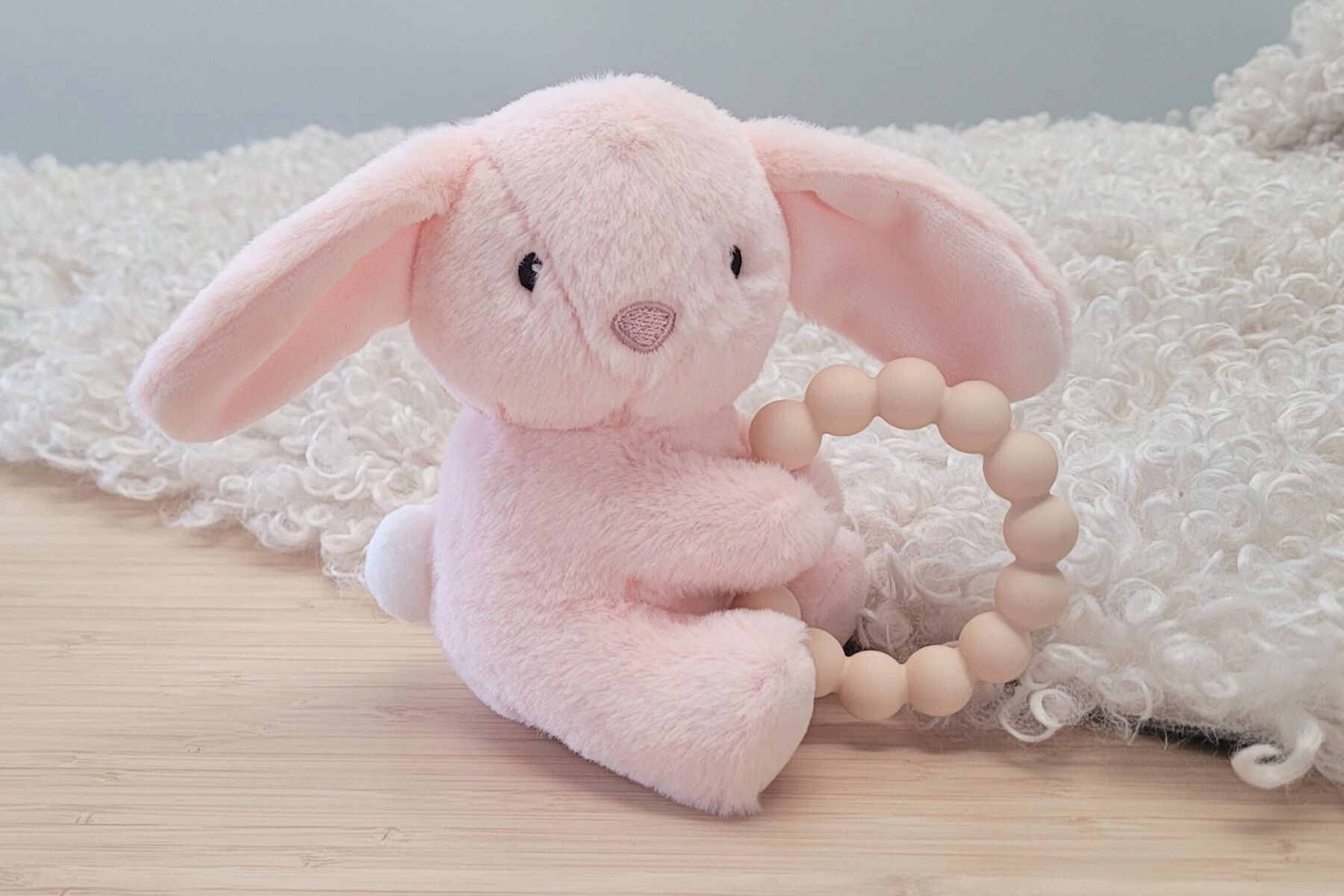 SNUGGLE PAL ROSIE RABBIT WITH SILICONE TEETHING RING