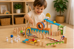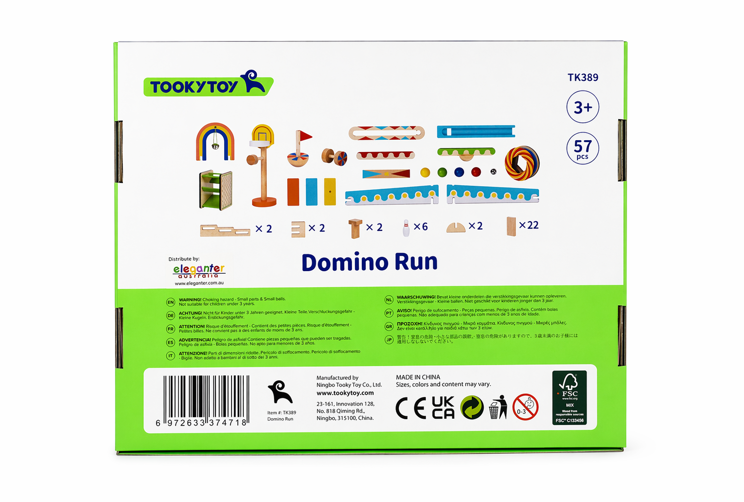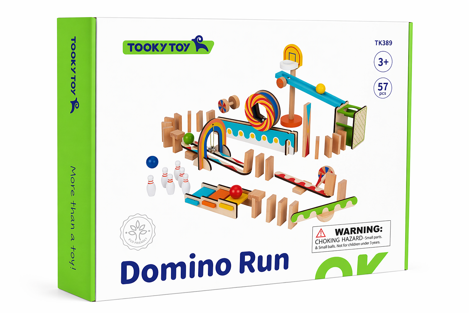 Tooky Toy's Dominoes Run set offers endless fun and creativity in a single package. With over 55 pieces included, this set provides everything you need to construct a captivating dominoes tile run. What sets this kit apart is the additional elements like steps, bell towers, and more, adding an extra layer of excitement to your domino run. Create your unique track with ramps, rollers, steps, and seesaws, and witness the marvel of kinetic energy in action. Once your design is set, release a ball or initiate a domino chain reaction, and observe the thrilling results as the pieces tumble and interact. When the dominoes have all fallen, simply pick them up and start the creative process anew. The large wooden Dominoes Run Building Set from Tooky Toy is crafted from premium timber and finished to perfection. It is painted with child safe, non toxic paint, ensuring a safe and enjoyable play experience. With the ability to perfect your design repeatedly or explore new possibilities, this set provides endless entertainment and learning opportunities for young minds.