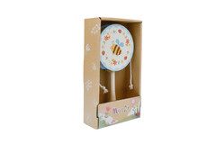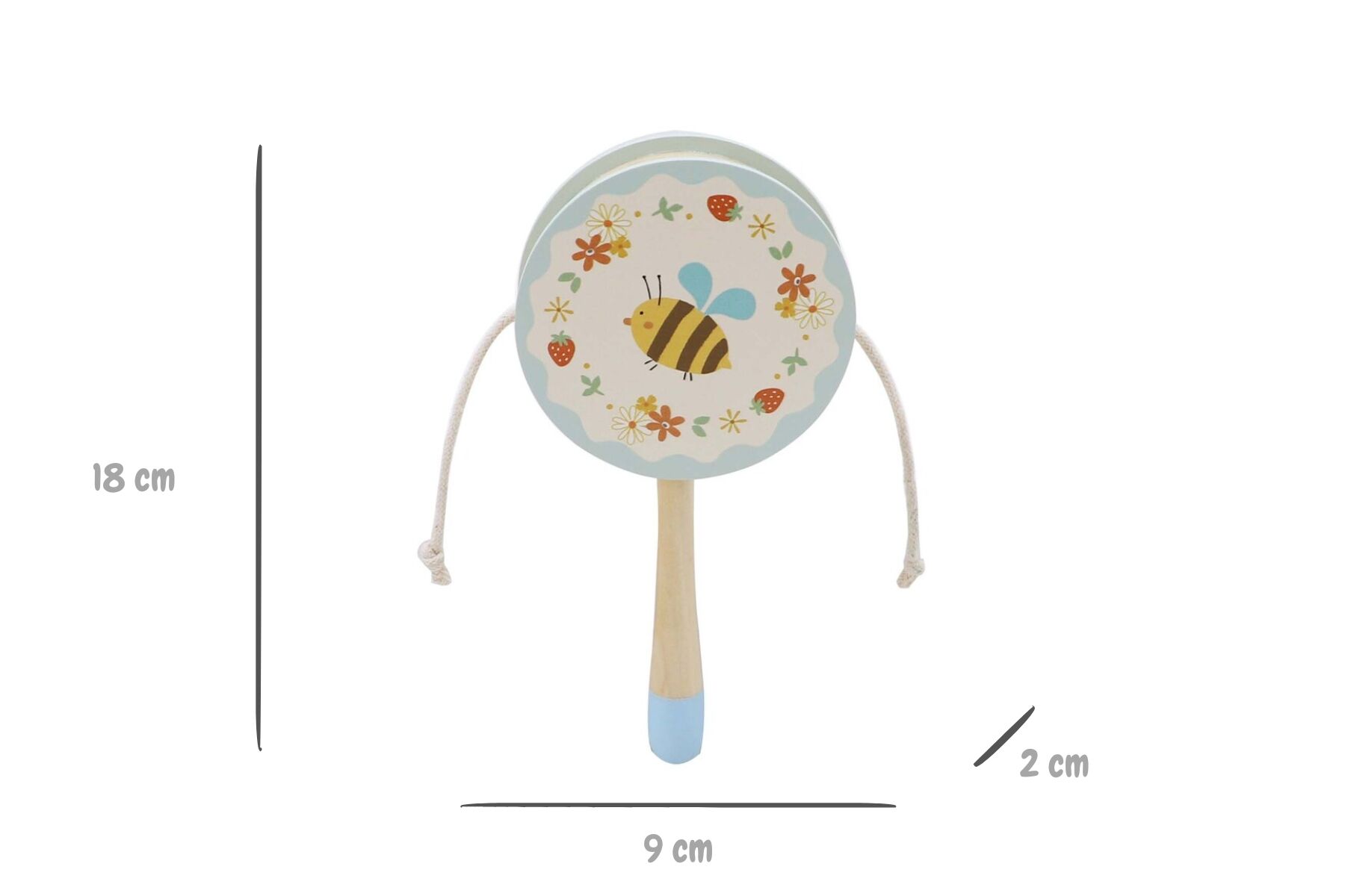Delight in the sweet sounds of spring with the Wooden Bee Twist Drum from Kaper Kidz. Featuring an adorable spring insect design, a buzzing bee. This drum is painted in non toxic, child safe soft pastel colours and adorned with charming flowers, making it as beautiful as it is fun. Simply twist the drum in your hands, and watch as the strings swing into the drum, creating a soothing and melodic sound that will captivate your little one. Designed for children 10 months and up, the Wooden Bee Twist Drum from Kaper Kidz helps develop fine motor skills, hand eye coordination, and auditory awareness as little ones discover how to create sound through motion. Perfectly sized for tiny hands, it is a delightful way for toddlers to explore cause and effect learning, all while enjoying the gentle rhythms of play.