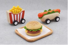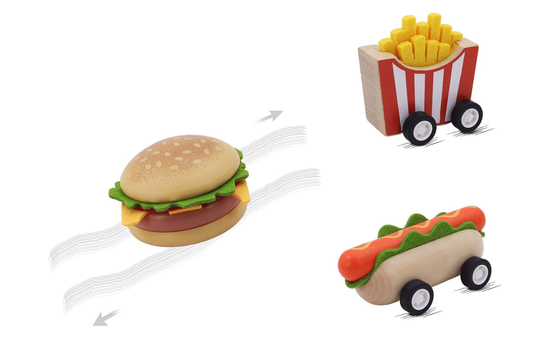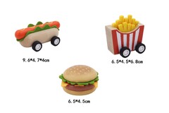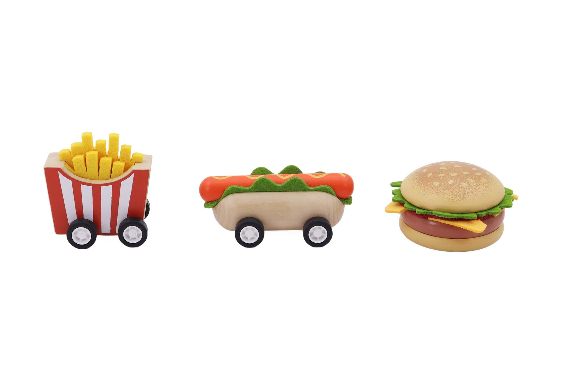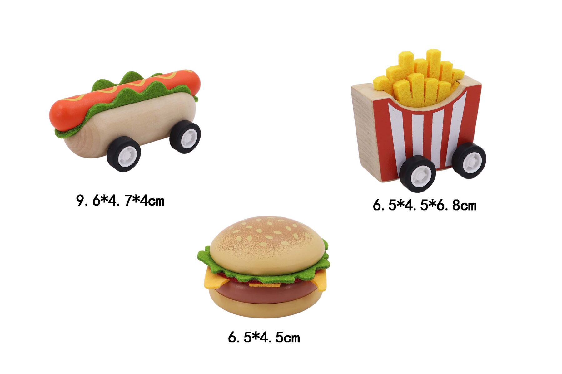 WOODEN PULL BACK FAST FOOD SET OF 3