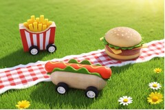 Perfect for toddlers and preschoolers, the Wooden Pull Back Fast Food from Kaper Kidz combine classic materials with interactive fun. Ideal for playrooms, early learning settings, or as a unique gift, the hotdog, burger or the chips delivers screen free entertainment that parents can feel good about.