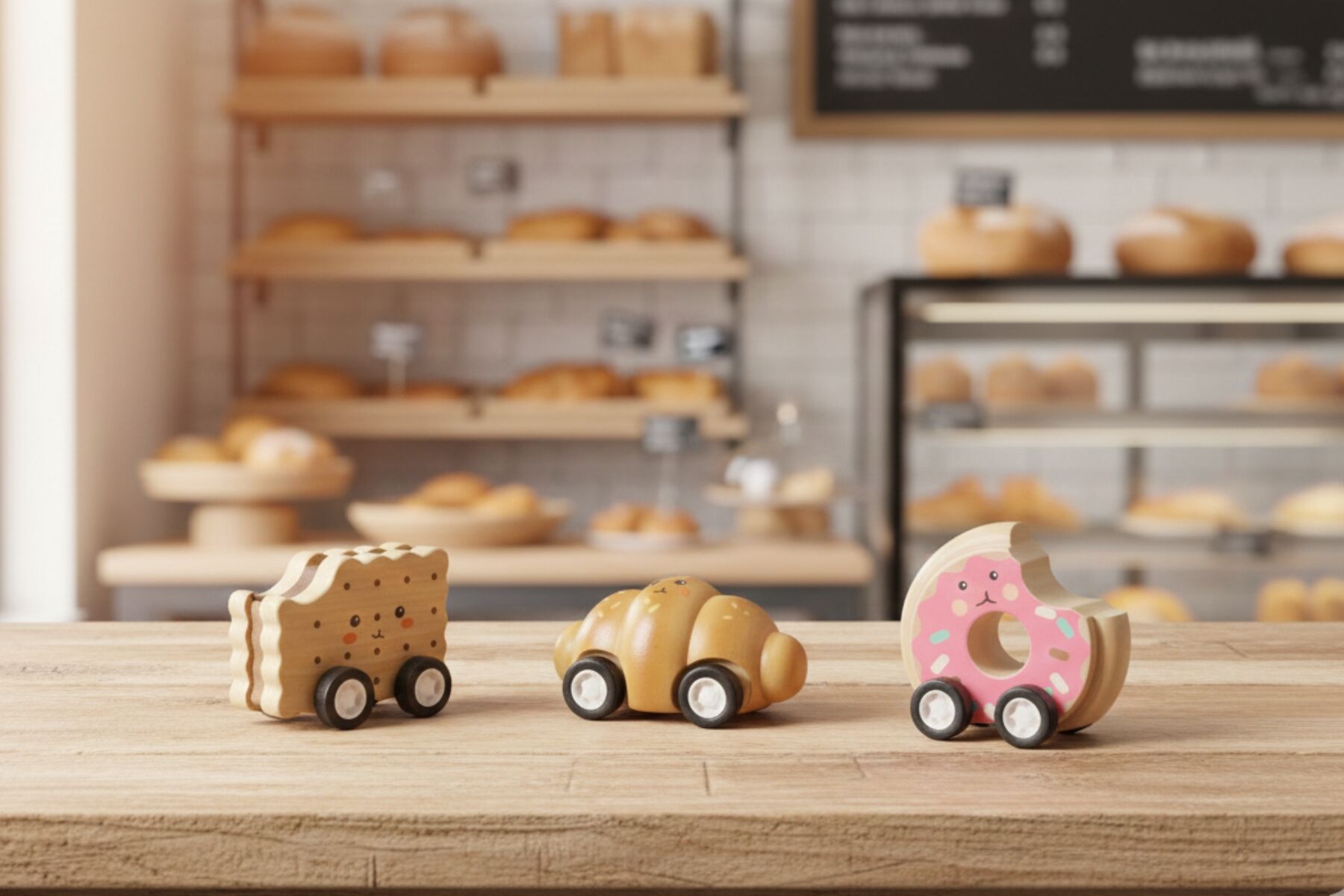 Painted with child safe paints and crafted from durable wood, these pastries are designed for little hands to grasp, pull and release. The simple pull back action supports fine motor development, coordination and early problem solving skills through active play. Perfect for toddlers and preschoolers, the Wooden Pull Back Pastries Set of 3 by Kaper Kidz make a charming gift, stocking filler or addition to early learning environments.