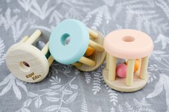 Introduce little ones to the joy of sound and movement with the beautifully crafted Calm & Breezy Wooden Rattle from Kaper Kidz. Made from smooth, sustainable timber and painted in soft peach, grey, or mint with child-safe, non-toxic paint, these rattles are designed with both style and safety in mind. Each rattle features gently rounded edges, easy-to-grip bars, and colourful wooden beads inside that create a soothing clattering sound as they roll and shake. Perfectly sized for tiny hands, these rattles encourage sensory exploration, hand-eye coordination, and early musical play. A timeless and calming first toy that’s as lovely to look at as it is to play with.