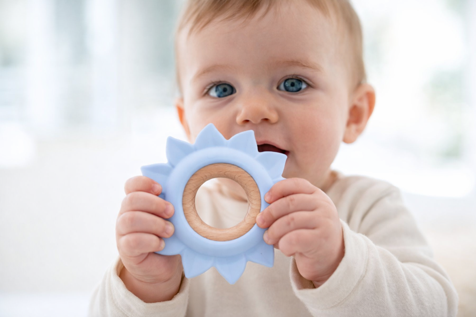 Enhance your babys teething experience with the Blue Sunflower Teether from Koala Dream, a delightful addition to your little one's teething essentials.