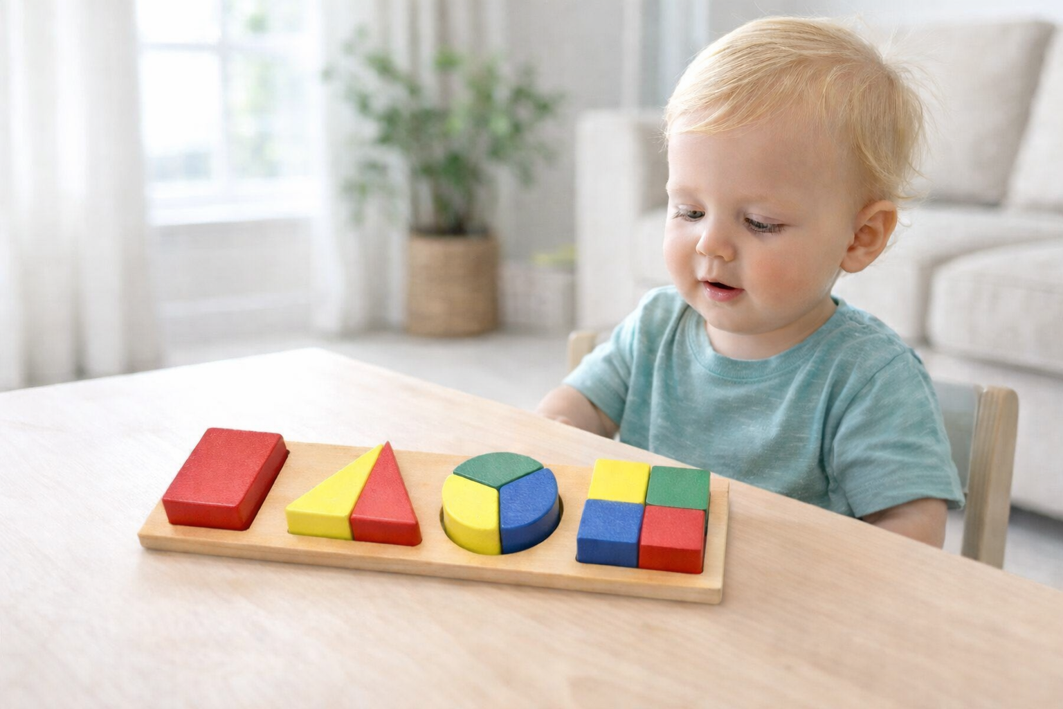 Introduce little learners to the world of fractions with this colourful Wooden Fraction Board. Featuring four classic shapes – a whole rectangle, half triangle, circle thirds, and square quarters – this engaging set makes early maths hands-on and fun. Each piece is painted in bright primary colours and designed to fit snugly into the sturdy wooden board, helping children understand parts of a whole while developing shape recognition and problem-solving skills. A playful and educational tool perfect for home or classroom learning.