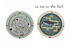 Whale Maze Puzzle: A circular wooden gravity maze with an endearing whale and ocean friends theme. Tilt to guide the balls through the path, enhancing fine motor control and patience.