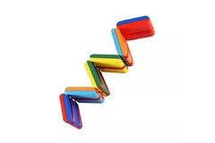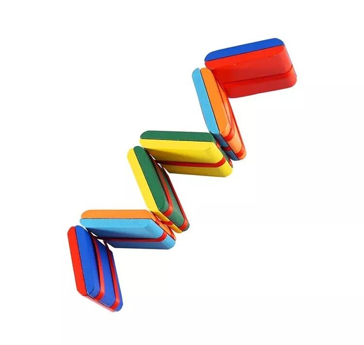 Jacob's Ladder: A classic wooden illusion puzzle made from six colorful, rainbow-painted blocks connected by ribbon. Introduce a simple mechanism of movement and a delightful tumbling motion.